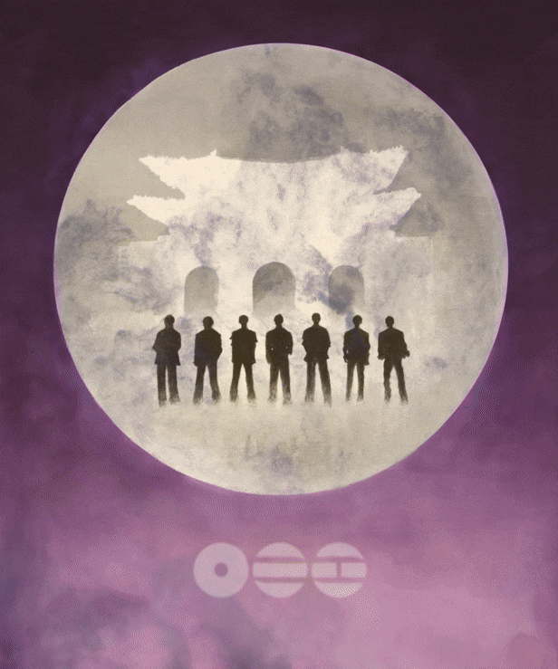 최근 공개된 '신 몽유도원(광화문 ARIANG)'은 방탄소년단(BTS)의 광화문 공연을 계기로 선보인 작품으로, 안견의 「몽유도원도」를 현대적으로 재해석한 작업입니다. 보랏빛 하늘과 달, 그리고 광화문과 방탄소년단의 이미지가 겹쳐지며 현실과 이상이 교차하는 풍경을 만들어냅니다.